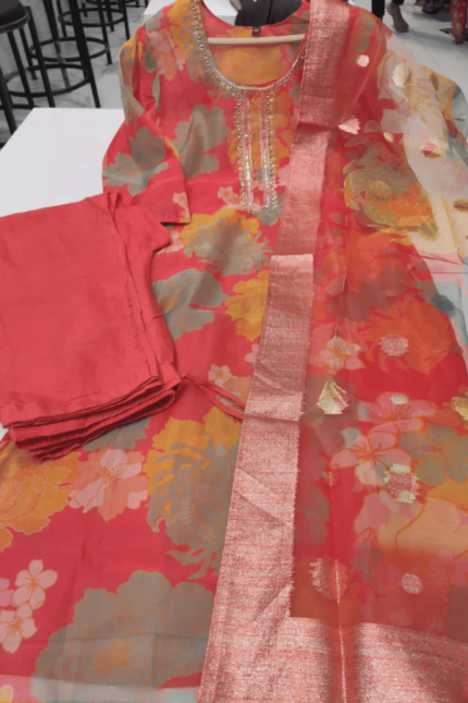 Beautiful pure chinon alia cut 3pc set on a bold floral print-SK0023