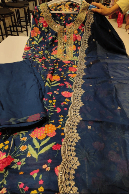Beautiful pure chinon alia cut 3pc set on a bold floral print-SK0023