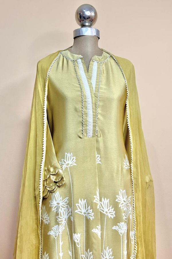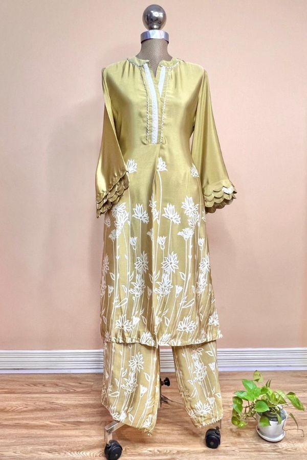 Kamiz and palazzo Material: Crepe silk with digital print and lace work.